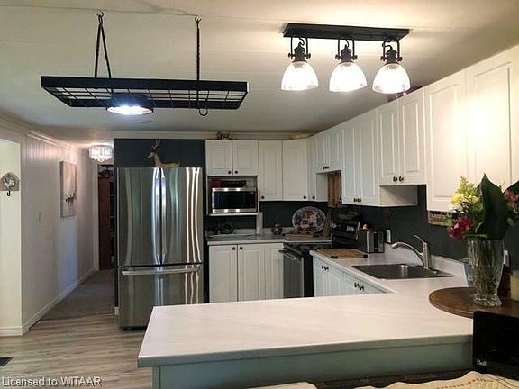 MASSIVE PRICE REDUCTION!!! Welcome to Forest Estates, a year-round, all-ages park, where you can enjoy an affordable home alternative in a peaceful country setting, just minutes away from Woodstock, Cambridge, and Kitchener-Waterloo! This sought-after opportunity in Forest Estates offers the charm of rural living with incredibly low maintenance fees (less than $200/month), which includes water. This is a CO-OP/Shareholder form of ownership, not a leased land situation. Spacious bungalow-style home situated on a double-wide lot with huge fenced yard and paved parking for 4 vehicles. Large open-concept living, dining and kitchen area, perfect for hosting gatherings and entertaining plus comes complete with a cozy gas fireplace. Huge master bedroom with ample space for a couch and king-size bed. The 2nd bedroom is accessed from the Primary making an ideal location to set up a home office. The large bathroom also doubles as a laundry room. Beautiful fenced yard out back with a deck, an 8x10 shed, and plenty of space for outdoor entertaining. Features forced air heating and central air conditioning. Recently upgraded with a new furnace and AC, new flooring throughout, new appliances, new counters, new light fixtures, new deck boards and newer windows & roof. Motivated seller.