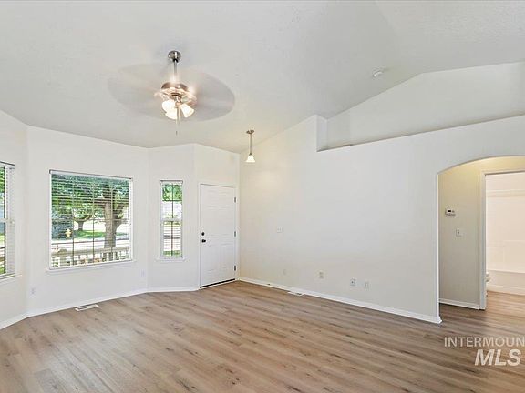 Excellent location with great freeway access and just minutes away from Nampa or Meridian. This single level home is Clean and ready to move into. Open floor plan with vaulted ceilings, updated flooring, and split bedroom design. Covered front porch, large fully fenced yard with auto sprinklers on a nice corner lot. New roof in 2025 and newer water heater. Just down the road from Orah Brandt Park.