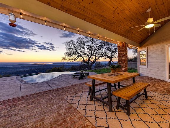 Amazing mountaintop retreat on 20 beautiful acres in Browns Valley! This exquisite getaway has stunning views of the sunset over the Sutter Buttes, Mayacamas Mountains, the Sacramento Valley, and beyond. The custom home is powered by owned solar (and a backup partial house generator) and boasts an open floor plan, remodeled kitchen and bathrooms, and a long list of amenities. The backyard features an infinity edge pool, built-in BBQ, redwood deck, and covered patio, all designed to take in the incredible views. Nestled on the parklike grounds is a greenhouse, garden beds, fruit trees, and a ~2,600 sq. ft. shop with electrical and plumbing for easy conversion to a possible studio living space. The property also has irrigation water available seasonally for crops, pond, lawn, and gardens, and includes a 13k-gallon water tank and 3 fire hydrants. A recreation haven located approximately 8 miles from Collins Lake, and 20 miles from Bullards Bar Reservoir with boat slips, fishing, and more!