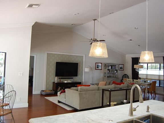 This is a real ''WOW'' house. Totally updated inside with all new everything. New gourmet kitchen with top of the line cabinetry and appliances including wine cooler. All new wood flooring thru out the entire house. Both bathrooms fully updated. Large office built in from garage. New crown moldings and baseboards thru out. Outside features a ''Club Med'' style oversize salt water heated pool. The backyard also includes a Tiki Bar area and large built in putting green. Also included in a nice covered loggia area, perfect for TV watching. The side yard of this home is large enough to park a nice size boat behind the fence and also inlcudes a nice utility shed for storage. A truly amazing home that must be seen to be appreciated.