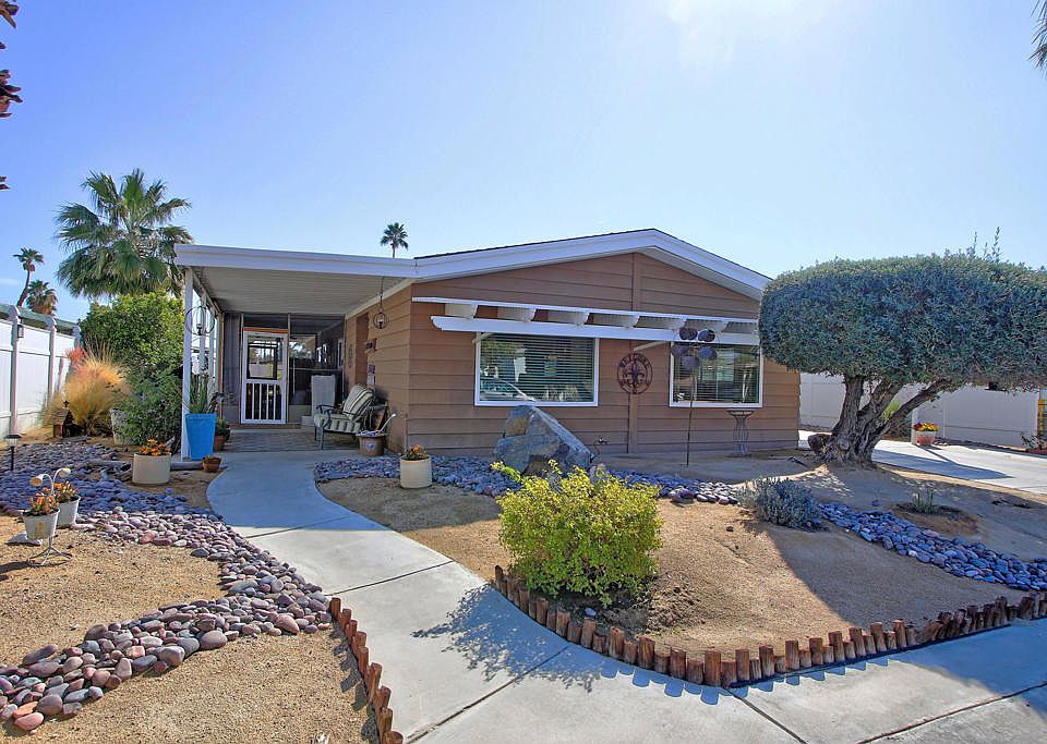 THIS IS IT A Beautiful and Comfortable home. in a great 55+ community. This 2/2 , Fully Remodeled home has three patios. Centrally localed in Palm Desert. Portola Country Club, Near shopping, entertainment and fine dining. The property is Well Landscaped (front, side and rear yards). The living/dining, family room, kitchen , master and guest baths have all been remodeled. A screened Sun Room with tlile flooring (approx 200 sf) provides additional entertaining space. Wood lamenent throughout, Quarttz counters. Dual Pane windows and Dry Walled (except guest bedroom). Upgraded wood doors throughout. New Water Heater, (Evaporative cooler, not installed, free to buyer). Garage door added to carport. Vinyl fencing, THREE PATIOS for your outdoor enjoyment. FREE Golf-Par 3, (18 hole). FREE Internet & Cable TV, and FREE Trash service. Tennis & Pickle Ball, Bocce ball, Exercise Room, Sidewalk Cafe, Pub, Library, Pool Table, Clubhouse and 3 swimming pools with spa's. Low HOA ($379/mo). A very active and friendly community and pet friendly.