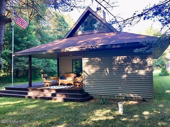 Looking for that 2nd home? Want something nice, yet affordable? Something on the water? Not too far from home? Look no further! Find this stunning Chalet on the Pere Marquette River built in 2000. It is turn-key beautiful, needs nothing, comes with all appliances & washer/dryer. This home is immaculate and boasts a brand new 24x36 pole barn plumbed for a full bath & additional bedroom, has a wrap around covered porch for entertaining regardless of weather, multiple decks, outdoor swing & fire pit of course...all on a full 1 acre lot. At the breathtaking riverfront, find a deep water fishing hole right at the end of your steps...HELLO - TROUT FOR DINNER! Inside find a 20' tall custom stone-wall wood fireplace, knotty pine walls / ceilings...a must see that simply won't last! Call today!!!