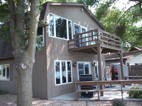 A RARE FIND: PROPERTY ALSO INCLUDES A 36X50 WICK BUILDING ACROSS THE ROAD AT 2177 OAKHURST AVE. This beautiful lake home features 4 bedrooms/3 baths and an open concept design. The oak kitchen has quartz counter-tops and stainless-steel appliances including an electric stove, side by side refrigerator, dishwasher, and microwave with vent. A main floor laundry. The living room has a wood-burning fireplace along with a wall of windows. Checkout the stunning view of the lake. There is a bonus room:a 22x18 family room to accommodate all your family. You will love the lakeside master bedroom with a private deck .The master features an en suite full bath with neutral tones and a double quartz sink. There is a guest bath along with the 3 bedrooms. Shaded lot. Access to bike path. A MUST SEE!