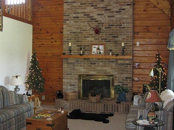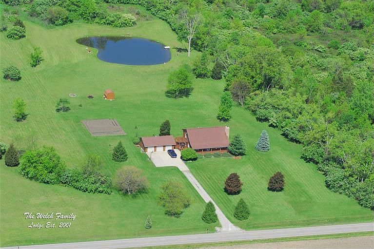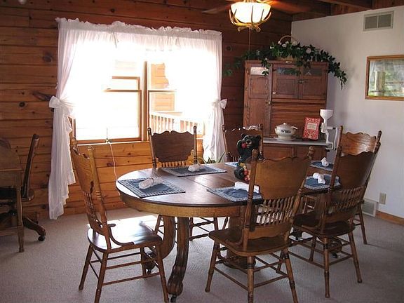 BEAUTIFUL Northeastern LOG HOME on 5 Acres with POND stocked w/Largemouth Bass, Red Ear Sunfish, Channel Catfish & More! Covered Front Porch welcomes you into this immaculately cared for home: Spacious living room features cathedral ceiling & a fireplace that can be Gas or Woodburning. Main Floor Owner's Bedroom, full bath. Kitchen is nearly large enough to be called Eat in with 1 yr old Refrig., faucet, 3 yr old disposal, 4 yr old dishwasher. Roomy dining room. Main floor Laundry Rm. Upstairs find a huge Loft that is the Family Rm. It walks out to one of the decks. (All decks stained recently). 2 Bedrooms and a full bath on this floor. Full Basement has a Finished 14 x 13 Office/Study, (Desk can stay) Just a few steps to the detached 3 car Garage. Storage Shed. Enjoy the 5 Acre Lot and the inviting pond. Country Property yet minutes to shopping - a most convenient location! If you've dreamt of of Log Home here it is, without the expense and problems associated with building.