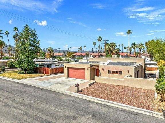 Nestled in the heart of South Palm Desert, just steps from the renowned shopping and dining of El Paseo, this beautifully updated 3-bedroom, 2-bathroom home offers the perfect blend of comfort and convenience.Step inside to discover an inviting open-concept layout with high, vaulted ceilings that create an airy and spacious feel. Gorgeous natural wood plantation shutters add warmth and charm throughout the home. The spacious primary suite boasts a large walk-in closet, providing ample storage.The fully remodeled chef's kitchen is a culinary dream, featuring a stainless steel Viking stove, KitchenAid built-in refrigerator and dishwasher, and a separate walk-in pantry for extra storage.Designed for efficiency, this home includes an owned solar system. The attached two-car garage houses a washer and dryer, while the extended driveway offers extra parking and RV space.Outside, the wrap-around yard features low-maintenance artificial turf, a large sandbox, and an above-ground spa, creating the perfect setting for relaxation and outdoor fun.Located in the highly sought-after Washington Charter Elementary School District, this home offers the best of South Palm Desert living. Don't miss your opportunity to own this exceptional property!