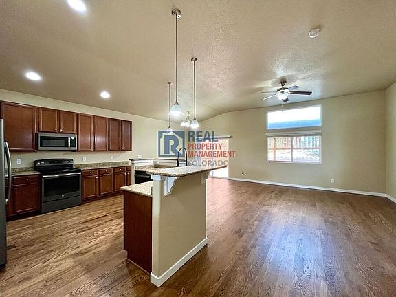 You won't want to miss out on this beautifully maintained, move-in-ready home! Located in the established neighborhood of The Glen, this home is bursting with charm and space! You're welcomed into the sprawling main floor, which features an open concept living/dining/kitchen area. It features vaulted ceilings and recently upgraded hardwood floors throughout. The kitchen boasts granite countertops, ample cabinet space, and a large breakfast bar. There is a walkout to the stunning backyard, which includes turf for easy maintenance, a stamped concrete patio with an impressive custom pergola, and mature trees for the utmost privacy. The main floor also features a spacious secondary bedroom, a full bath, a laundry room, and access to the oversized 3-car garage (with an EV charging plug!). The primary suite is also located on the main floor, it features vaulted ceilings and blackout window treatments. The oversized attached bath includes separate vanities, a large soaking tub, a walk-in shower, a private water closet, a linen closet, and a huge walk-in closet. If that wasn't enough, downstairs you will find an enormous second living room with multiple closets for extra storage. The lower level features 2 sprawling secondary bedrooms and a large full bath with double sinks and an oversized bathtub. This home boasts easy access to Powers Blvd and I-25. It is less than 5 miles from Fort Carson and less than 12 miles from Peterson SFB. It is within close proximity to shopping, schools, and parks! *There is a bird house hanging from the pergola roof -please be aware that if there is active nesting, the bird house cannot be removed. Please let us know if there are any questions or concerns. Additional rental information: Pets with owner approval: maximum 2 dogs, NO CATS. Max weight 35lbs, minimum age of 2. The tenant is responsible for all utilities. Tenant must hold a renter's insurance policy for the term of the lease. Real Property Management Colorado is proud to offer deposit-free living to qualified renters through Obligo! We understand that moving costs can add up, so we want to extend financial flexibility to our residents. When you move in with us, you can skip paying a security deposit and keep the cash for activities you care about! Real Property Management Colorado Equal Opportunity Housing All leases subject to application, administration and processing fees. Prices and availability subject to change. Real Property Management Colorado, LLC cannot verify the accuracy of property information listed on third party sites. Please visit Real Property Management Colorado, LLCs website to confirm property information. The prospective tenant(s) have the right to provide to Real Property Management Colorado a portable tenant screening report, as defined in section 38-12-902 (2.5), Colorado revised statutes; and if the prospective tenant(s) provide Real Property Management Colorado with a portable tenant screening report, real property management Colorado is prohibited from charging the prospective tenant(s) a fee for real property management Colorado to access or use the portable tenant screening report. In order to qualify, prospective tenant's application must be considered complete and include the following documents at the time of submission: a completed application for everyone 18 and older, unexpired government issued photo-ids, proof of income, a signed brokerage disclosure, and a portable tenant screening report containing credit, rental history, and criminal background information within the last 30 days and showing the prospects' name, contact information, verification of employment and income, and last known address. Applicants who do not submit a completed application based on the above will be considered incomplete and will not be considered for the property. Basement Finished Carpet Flooring Granite Countertops Great Room Hardwood Flooring Kitchen Island Lot Sloped Main Floor Bath N/A Tile Flooring Utility/Laundry Room Vaulted Ceilings Walk In Closets