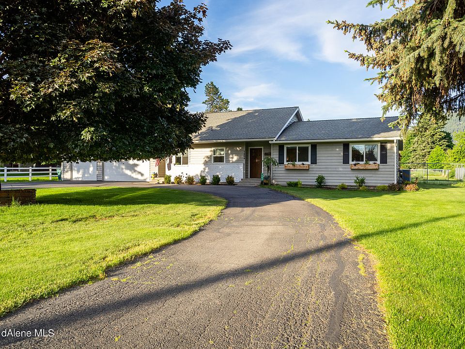 Don't miss this updated rancher on 1.1 acres in Dalton Gardens. It features a 3 car garage, covered back patio, views of Canfield Mountain. Ceilings are vaulted, and there is new flooring throughout. The kitchen is open and bright, featuring new stainless steel appliances. There is office space near the living room. Mature trees grace the front of the home, offering shade in the summer months. The home is within minutes to Honeysuckle Beach on Hayden Lake. All of this is on a true Dalton Acre. There is plenty of room for entertaining, animals, and gardening. House is move in ready with recent recent upgrades throughout the whole home.