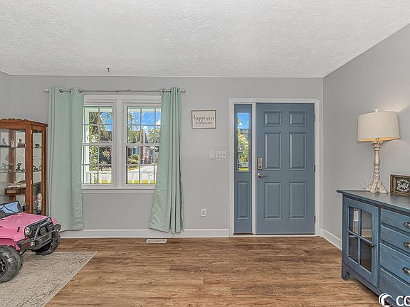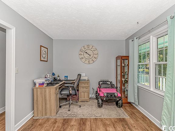 Welcome to your dream home in the charming Pine Creek neighborhood! This spacious and beautifully appointed 3-bedroom, 3.5-bathroom residence sits proudly on a generous corner lot with a great front porch, boasting a delightful saltwater in-ground pool, and the best part? No pesky HOA restrictions to cramp your style. As you step inside, the elegant foyer beckons you with its tasteful LVP flooring that gracefully extends throughout the entire home. To your right, you'll discover an open-concept living room, dining area, and kitchen, all thoughtfully designed for both functionality and style. A convenient half bathroom is also situated on this level for your guests' comfort. The living room is the perfect place to unwind, with a functional wood-burning fireplace featuring an exposed brick hearth, providing warmth and charm. The kitchen has been tastefully upgraded with custom painted cabinetry, gleaming granite countertops, and top-of-the-line stainless steel appliances. Adjacent to the kitchen, a cozy dining area bathes in natural light streaming through a spacious bay window. The main level of this splendid abode boasts a generously sized primary suite, offering ample space for a seating area and a private escape. The en suite bathroom is a luxurious retreat, complete with a double sink vanity and a soothing garden tub/shower combo. Venturing upstairs, you'll find an additional living space, two more spacious bedrooms including a 2nd floor primary bedroom with en suite, and a non-conforming bedroom, perfect for use as a potential fourth bedroom, all accompanied by two full bathrooms, making daily life a breeze for everyone in the household. The converted 2 car garage is a fantastic large space for entertaining, with easy access to the back yard. Speaking of the backyard, it's an oasis of relaxation and recreation, featuring a pristine saltwater filtered pool and a 6-foot privacy fence to ensure your utmost enjoyment and seclusion. Beyond the beauty of this home, you'll relish the convenience of easy access to SC-707 and SC-544, making it a short drive to shopping, dining, schools, and all the area's exciting attractions. Plus, with the beach just a stone's throw away, you can enjoy the coastal lifestyle at your leisure. Don't miss out on the opportunity to make this exceptional Pine Creek home yours! Embrace the freedom, style, and comfort it offers, and schedule your viewing today. Measurements are not guaranteed, buyer is responsible for verifying.