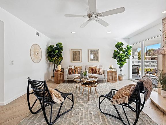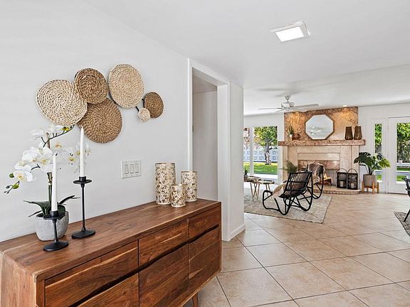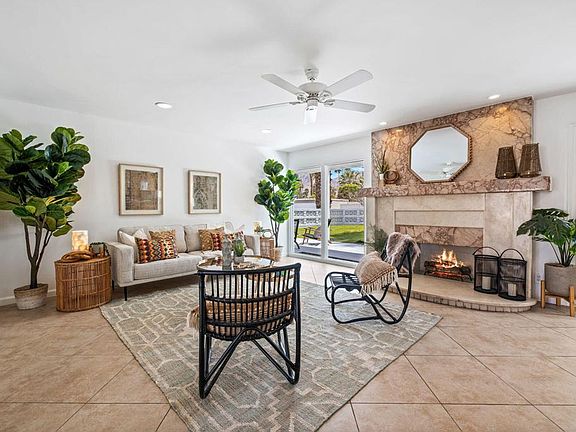Fantastic opportunity to own a 3 bedroom, 2 bathroom PLUS additional guest house with bedroom, bathroom, and kitchenette in the heart of south Palm Desert! Totaling over 2,000 SF., this charming property has been freshly painted and awaits its new owner! The main house offers large bedrooms and a cozy fireplace in the living room with galley kitchen featuring granite counters and a sleek wine fridge. The primary bathroom offers a soaking tub, lovely stone work, and separate free standing shower. Casita is large and very light and bright! There is space off the casita that would be perfect for a garden! This large lot offers citrus trees and extensive patio cover and is accented with adorable breeze blocks! Just steps away from a community pool that only 7 other homeowners share with you! This is a rare opportunity, do not delay!