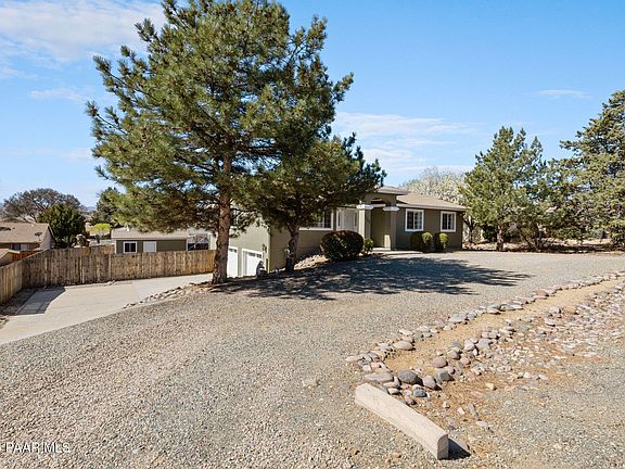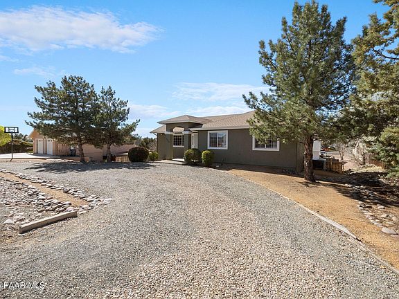 Spacious and versatile, this 5-bedroom (with potential for a 6th), 3-bath, 2,892 sq ft home set in a desirable neighborhood of Prescott Valley offers comfort and functionality. The main level features vaulted ceilings, hardwood floors, a cozy gas fireplace, and a bright, open living space. The kitchen boasts a breakfast bar, new appliances, and a large walk-in corner pantry. The Primary Suite includes a garden tub, separate shower, and ample space to unwind. Skylights fill the home with natural light, while a large deck off the dining area provides the perfect spot for entertaining. The lower level, with a private entrance, is ideal for an in-law suite or rental income. An oversized side-entry 2-car garage, shed/workshop, and a spacious fenced yard complete this must-see property.