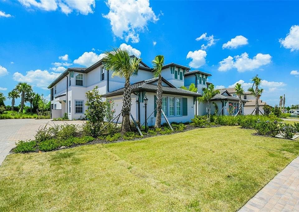 This like new and meticulously maintained carriage home features 3 bedrooms and 2 baths in an open floor plan spanning 1,748 square feet. Sliders open onto a screened lanai with beautiful views of the Royal Lakes golf course. Spacious great room encompasses dining room, breakfast area and on-trend kitchen with large island, quartz counters, tile back splash, separate pantry, stainless appliances and gas range. Tastefully decorated in neutral tones complimenting porcelain tile throughout living areas, hall, baths, and laundry with a built-in sink. The master suite features a private door to lanai, spacious, custom-designed walk-in closet, double-sink vanity with quartz counters, and a large frameless glass shower. The split bedroom floor plan, supplemented with ample closet space, is ideal for overnight guests. This carriage home is located in highly-sought Lakewood Ranch, a master-planned community offering owners the ultimate Florida lifestyle with a private country club, four golf courses, 18 lighted tennis courts, athletic facilities and nearby polo fields and parks. Additionally, Country Club East provides residents with the privacy and security of gated-community living. Lakewood Ranch offers easy access to family-friendly and gourmet dining, exceptional shopping and entertainment.