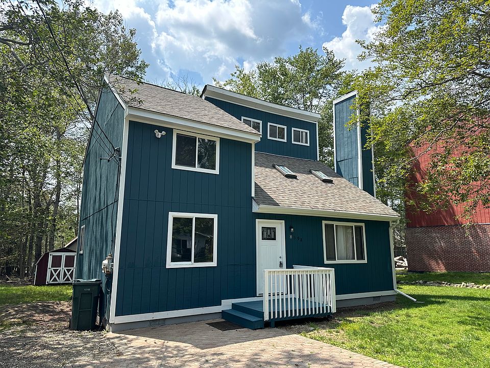 Welcome to your new home at Pocono Country Place! This home features 3 spacious bedrooms and 2 bathrooms with abundant natural light from multiple skylights, open-concept living/kitchen area with high vaulted ceilings and a cozy fireplace. The living room opens up to a well lit sun room which leads to the back deck/patio area. The main level master suite has a renovated bathroom with modern fixtures and the owner has installed new laminate flooring throughout. Upstairs you will find a loft area providing a versatile space as an office or den area, all while overlooking the living room below. The community offers endless amenities such as swimming pools, tennis courts, and playgrounds. Tenant pays all utilities (Electric, water, Sewer) . Must be a 12 month lease. Tenant pays Sewer, Water, Electric. HOA Fee