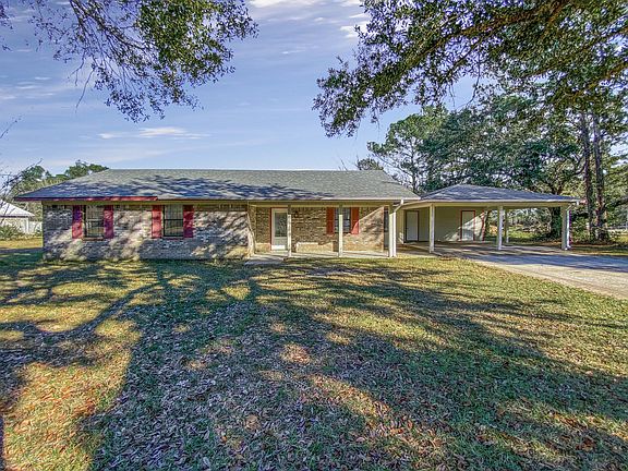 Adorable ranch style home on acreage outside of the City Limits. The home sits back off the road taking full advantage of the land. Spacious Master Suite. Dedicated Dining Room. New Carpet. Fresh Paint. Kitchen Granite. Large Laundry Room. Double Carport with 2 store rooms. Family Room with French Doors overlooks the large back yard. Quick Access to the Interstate or Beach Boulevard. Within the Award Winning Pineville Elementary Zone. Low taxes! Best of all, no flood insurance requirements. Plenty of space to grow. Mature oaks offer a shady view from the front porch. Close to the SEABEE Base at Gulfport. Washer, Dryer, and Riding Mower to remain with the home as an added plus!