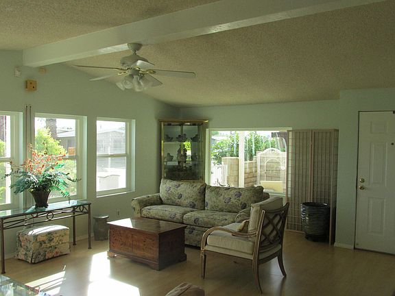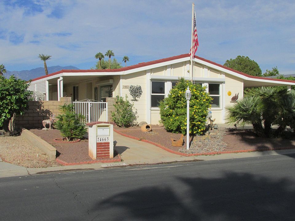 PRICE REDUCED & YOU OWN YOUR LAND! Remodeled gourmet kitchen with quartz counters & island, garage, open & light concept await you in the beautiful 55+, gated Golf community of Portola Country Club. Mountain views from living room & patio. Tastefully furnished, this 2Br. is perfect for a second home or add your own touches & make it your perfect retirement oasis. The attached garage has its own workroom & there is a covered carport for additional parking. Enter into a high-ceiling living room with loads of light from the dual-pane windows with lovely mountain views. Light laminate flooring in the LR,DR,kitchen & hallway & newer central air. The large main bedroom with walk-in closet has an ensuite bath with both tub & shower. The laundry room offers lots of storage space. The large patio is enclosed with a masonry wall for privacy and perfect for your canine pal. A perfect sanctuary from the busy world yet located in an active community with all the amenities & activities for you to enjoy: 18-hole par 3 golf course, pickleball,3 pools, clubhouse with Pub, billiard & fitness rooms. Low HOA fee of $396 includes golf,trash,cable,internet & all community amenities. Close to El Paseo with its great shops & restaurants. For medical needs, Eisenhower Hospital and doctor's offices are close by. Portola has a friendly & small town feel with only 500 homes. Seller requests Cash offers. Come take a look!