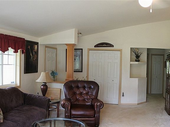 Lovely 3 bedroom, 2 bath single level home on huge .84 acre lot. Living and family room. Propane fireplace. Vaulted ceilings with unique design. Tile in entry, kitchen and dining. Built in bookcases. Jetted tub and walk-in closet in master suite. 6 panel doors, and maple cabinetry. Full 3 car attached garage. Extremely private setting. You'll love sitting on the covered front porch and watching the abundant wildlife. Only 10 years old and great condition. Hardiplank siding. Security system.