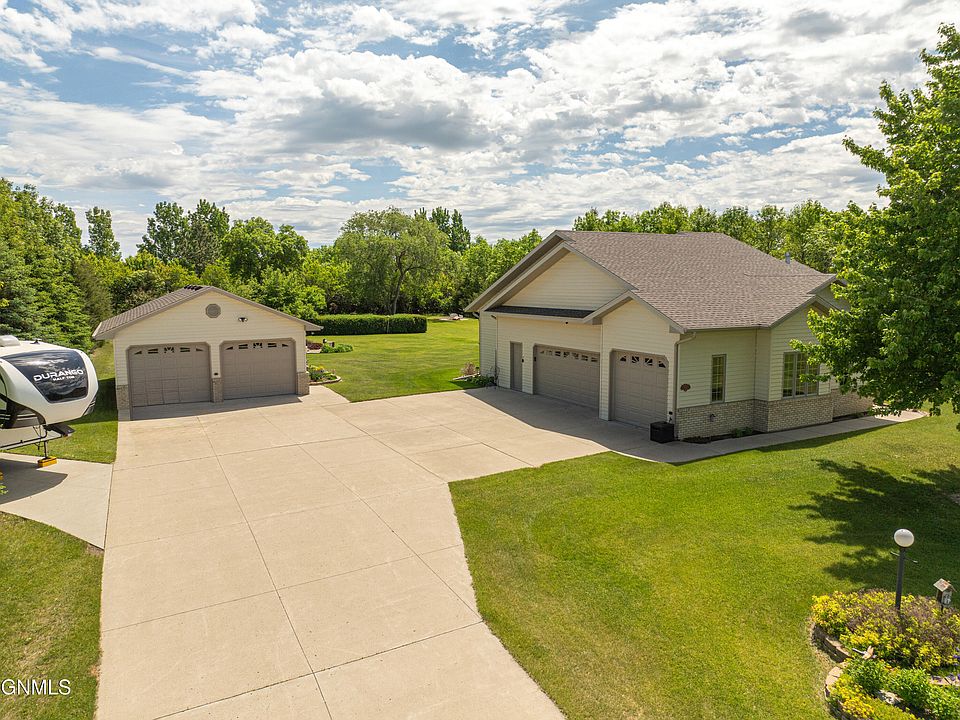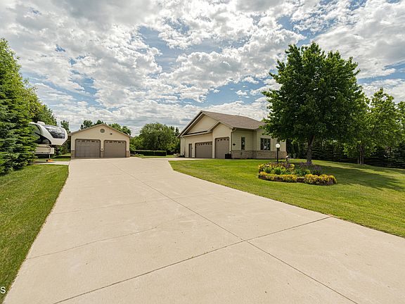 This ONE is a MUST SEE! Beautiful ranch style home in the Fox Haven Development, located just north of Bismarck, the property sits on 1.52 acres with mature trees and beautiful landscaping. Built by K&L Homes, known for quality construction, this home boasts an open layout with plenty of natural light and simply feels like ''home'' when you walk in. The updated kitchen features granite countertops, stylish backsplash, newer appliances (including a new Bosch dishwasher in 2023), and ample cabinet space. Step out onto the east facing deck from the dining room for outdoor entertaining. Truly a great place to grill a delicious meal, relax with your favorite beverage and simply enjoy the peaceful surroundings of the beautiful yard. The main floor also includes a large pantry, laundry room with cabinets and a sink, two bedrooms, and two bathrooms, including a primary ensuite with walk-in closet. The primary suite has a large walk-in closet, a double vanity and a walk-in shower. The partially finished basement has above ground windows, a completed bedroom and is plumbed for a bathroom (there's a function toilet currently installed). There is an abundance of space that is the perfect blank canvas, ready for you to finish according to your needs. The attached oversized 3 stall garage is insulated and plumbed for heat. It has shelving, a workbench, water and a floor drain. There is also a 768 sq ft detached shop that measures 24x32 shop with electricity. With the garage and shop combination, you get a total of 5 garage stalls! Other updates include newer carpet throughout the main floor, new A/C in 2023, and a camper pad next to the shop. TURN YOUR DREAMS INTO AN ADDRESS and call today to set up your private showing of this wonderful property!