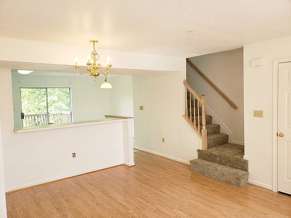 Beautiful 4 bedroom 2.5 bathroom town home in a sought after quiet neighborhood situated behind The Woodlands Golf Course. Freshly painted, brand new carpet (bedrooms), and brand new stainless steel appliances! Open floor plan with hardwood flooring on the main level walking out to back yard deck - a place to relax or entertain guests. Finished basement with hardwood flooring and walkout basement door. Brand new washer and dryer installed in utility room. Water and lawn care is included with the rental rate. 2 open reserved parking spaces is allocated to this home.