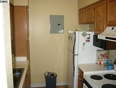 Larger top floor corner unit overlooking Assoc. open space, freshly painted, Berber carpet, Pertico kitchen floor, Additional carport, garage is 94, HOA includes basic cable.