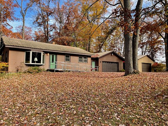 This 2-bedroom, 1-bath ranch home is nestled on 2+/- acres of mature trees, creating a picturesque and serene setting. The interior boasts several updates, including new kitchen flooring and a fully renovated bathroom. The hot water heater and furnace were both replaced in 2024. In addition, a new well was installed in 2022. The full basement includes a washer and dryer. An attached 2-car garage features a spacious mudroom/breezeway, perfect for transitioning from outdoor activities. A 24x30 pole barn adds ample storage space for all your outdoor gear. This home is ideally located near area lakes, rivers, and trail systems, making it perfect for year-round living or seasonal getaways. Don't miss the chance to make this beautiful property your own!