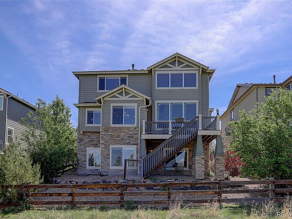 PRICE REDUCED...plus additional $3,000 cash at close for appliance/interior decorating upgrades. Gorgeous home overlooking park and playground. An impressive rounded staircase connects the homes 5 bedrooms, office, and bonus exercise room with elegance. With three bedrooms and two full baths on the second floor and two additional bedrooms with a full bathroom in the walk-out basement, this five-bedroom home is spacious and warm. The upstairs master bedroom has a 4-piece en-suite master bath and a large walk-in closet. The main floor kitchen features a large center island with seating and tranquil dining nook overlooking the open space. The nook and the adjacent back deck are the perfect locations to watch stunning sunsets over the Rocky Mountains. In addition to the kitchen, the main level of the home features a large formal dining room, home office, ½ bath, laundry/mud room leading to the extra-large two-car garage with overhead storage, and the living room features a cozy gas fireplace and stunning views through two-story windows. The basement family room is a great recreation area. Topping off this gorgeous home, is its location. It is in the highly desired Cherry Creek School District and sits at the end of a cul-de-sac. This quiet, no traffic neighborhood is adjacent to two amazing parks with play structures, spray pad, picnic areas, sand volleyball, horseshoes, bocce ball pits, and paved trails connecting to a vast network of recreational areas. This welcoming community is conveniently located near the Southlands Mall and many great shopping and dining options and with easy access to Aurora Parkway, Arapahoe Road, and E-470, this location is a convenient commute to the DTC and the rest of Denver metro.