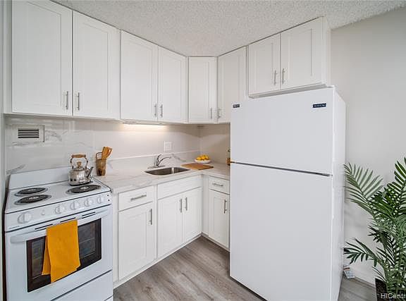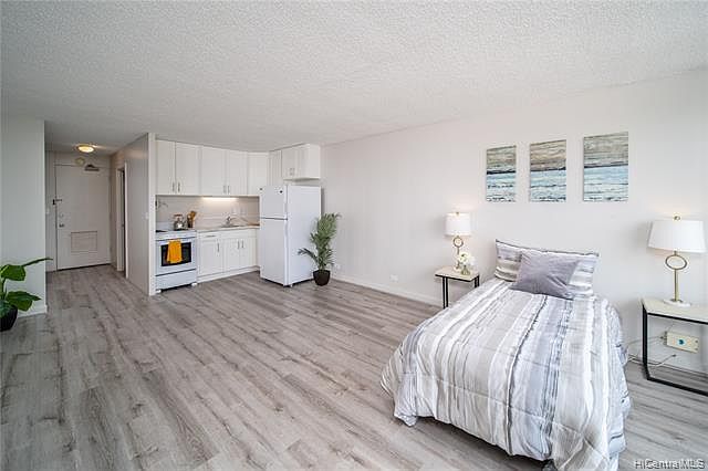 Looking for a unit in town under $260k with ocean views and low maint fees? Welcome to the Pacific Grand! This fully renovated, move-in ready unit is located just a few blocks from Ala Moana Shopping Center, Don Quijote, Wal-Mart and Sam???s Club. You???ll love the brand-new kitchen boasting quartz countertops and new cabinets while enjoying the use of your new range and refrigerator. New luxury vinyl plank flooring and fresh paint throughout leave you breathless as you meander from the kitchen to the bathroom to the scenic window views. Being on the 21st floor allows beautiful views of the turquoise ocean as well as mountain views. Low maintenance fees contribute to this being a great option for a first time home buyer. Enjoy use of the pool, community laundry or rentable parking spaces.