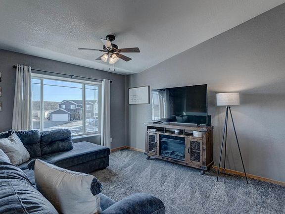 Welcome home to this charming 3 bed, 2 bath home, ideally situated at the end of a cul-de-sac in a quiet neighborhood. As you step inside, you will be greeted by soaring vaulted ceilings, an open concept layout, and an abundance of natural light streaming in through the large windows. The tastefully updated kitchen features stainless steel appliances, a convenient drop-in sink, and newer flooring that complements the beautiful cabinets. The recently finished basement boasts a large family room for entertainment and relaxation, along with a bathroom with granite countertop. The HUGE master bedroom with walk-in closet is sure to become your own private retreat within the home. Step outside onto the back deck and enjoy the fully fenced-in backyard, a perfect spot for hosting gatherings with friends and family. Minutes away from shopping, restaurants, Ellsworth AFB, and I90. Don't miss out on this gem!