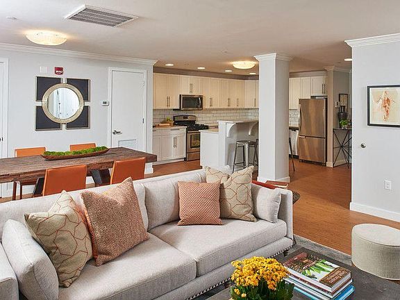 Very modern and oversized 2 br 2 bth in luxury midrise bldg minutes to Sono, train, shops, highways- gourmet eat in kitchen w/ high end cabinetry, stainless steel appliances- gas stove, dishwasher, microwave, granite countertops, breakfast bar that opens into sunfilled living/dining area w/ walls of windows, large master bedroom suite w/ walk in closet and private luxurious bathroom, generous sized second bedroom w/ lots of closets and full bathroom, gleaming refinished hardwood floors, central air conditioning, fresh paint, professional gym, 24 hour emergency maintenance, low security deposit- must see apt!