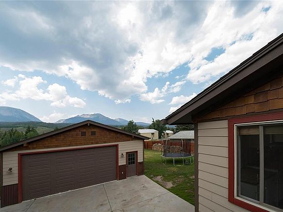 Welcome home, please come in & stay awhile! This 4 bdrm + den/office also boasts a 2nd large living area to give everyone a place to go. Kitchen, bathroom & exterior updates, fresh paint, newer doors & trim throughout. The .25 acre flat & fenced yard w/ mature trees beckons you to come enjoy the beauty of summer & the Gore Range mtn views. HUGE 2 car detached garage + storage shed + tons of parking 4 toys. WOW. Less than 2 blocks from Silv Rec Center & Rainbow Park; ideal Silverthorne location!