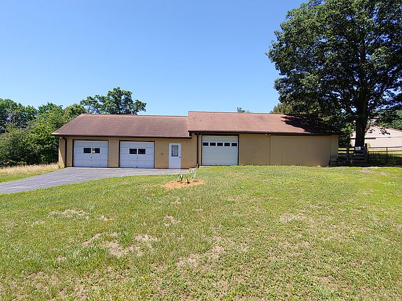 82.41 acres with pond and another pond on property line that is shared with adjoining property owner. Brick ranch home with really nice pasture and cropland. Attached 2 car garage, detached 1 car garage, detached 28x72 (6 car) garage/workshop. Open kitchen, dining area, and den. Formal living room with masonry fireplace. Hardwood and vinyl flooring. 3 bedrooms and 1 bath on entry level. walk-out lower level with full unfinished bath, laundry , masonry fireplace, and great storage. New septic system installed approx. 4 years ago. Older home on property sold ''AS-IS''. Several other barns and buildings on property.