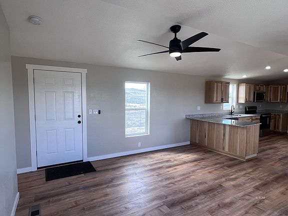 Welcome to a retreat nestled atop a serene hill, offering breathtaking views of the majestic Ruby Mountains and picturesque South Fork Reservoir. This exquisite 3-bedroom, 2-bathroom property has undergone a complete transformation, boasting a brand-new foundation, fresh exterior paint, and new roof. Step inside to discover a freshly painted interior, adorned with new flooring throughout, creating an ambiance of modern elegance. The kitchen & bathrooms feature new hickory cabinets, granite countertops, and new appliances. Every detail has been meticulously curated, from the new light fixtures & new doors, elevating the living experience. Relax and unwind in the spacious garden tub or immerse yourself in one of the 2 showers and new dual flush toilets. Step into the bedrooms with plush new carpeting. Or step outside to indulge in the beauty of nature perfect for soaking in the stunning mountain vistas and savoring the tranquil reservoir views. Whether you're hosting gatherings or simply enjoying quiet moments of solitude, this outdoor oasis offers endless possibilities. this property truly leaves nothing to be desired. Owner is related to listing agent (both lic NV RE Brokers).