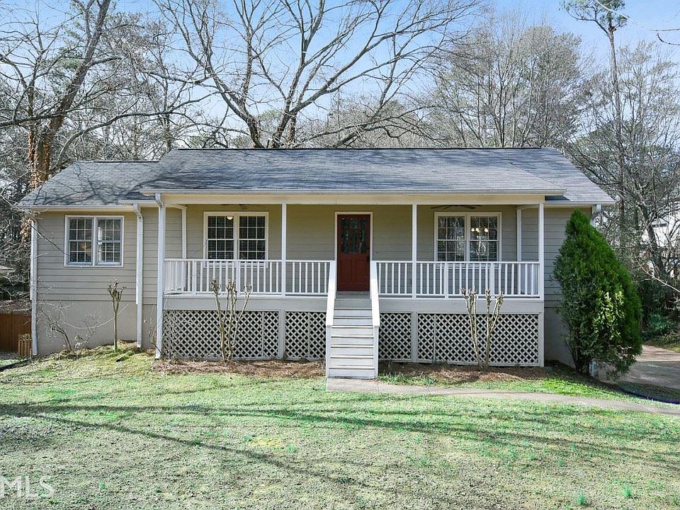 LOCATION! LOCATION! LOCATION! Within few minutes of shopping centers, interstates, highways, and Wheeler High and East Cobb Middle Schools yet located in a quiet peaceful neighborhood. Cute ranch home with rocking chair front porch and a huge private backyard which is great for entertainment. Beautiful open floor plan with cozy kitchen with lots of cabinets,counter space and fridge included overlooking spacious family room. Gracious master suite with private renovated master bath and two his/her closets, large secondary bedrooms with shared renovated bath. Partially finished basement featuring full bathroom and 4th non-conforming bedroom/bonus room/man cave. Located on a partial wooded lot.