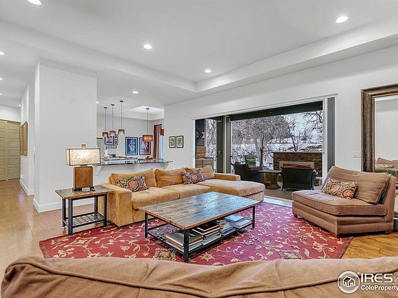 Nestled in the esteemed Mariana Butte golf course community, this semi-custom home perfectly blends luxury, comfort and functionality. Revel in the primary bedroom with its luxurious bathroom complete w/heated, travertine floor & spacious shower. Two more well-appointed main-floor bedrooms, each w/its own ensuite, this home is designed for both privacy & convenience. The gourmet kitchen is a chef's dream, fully equipped for culinary enthusiasts & designed to inspire while cooking & entertaining. An extensive, bi-fold sliding door extends the living space to an expansive balcony featuring a built-in stone gas fireplace, cocktail/beverage center & subtle ambient lighting for enchanting evenings. Custom-made panels allow you to enclose the balcony for year-round enjoyment. Step outside to a backyard oasis! The covered, outdoor kitchen & bar includes built-in cabinets and ample space to accommodate its current deep fryer, gas grill, griddle, smoker and prep table. Adjacent is a second stone, gas fireplace with a spacious patio offering plenty of seating for gatherings. The backyard is beautifully landscaped with abundant summertime colors, outdoor lighting, a tranquil water feature, an enclosed raised vegetable garden and a dedicated planting station for garden enthusiasts. The finished basement offers an impressive suite of rooms for additional living spaces. A second primary suite features a cedar walk-in closet, coffee bar, mini fridge & vanity/make-up area. The expansive family room boasts a dedicated TV viewing area, pool table & a dry bar with a mini fridge...perfect for relaxing and easy entertainment. Additionally, a 5th bedroom provides a quiet space for guests or possible office, while another room is pre-wired to serve as a state-of-the-art theatre room. Experience refined living and endless versatility in one of Loveland's most sought-after communities!