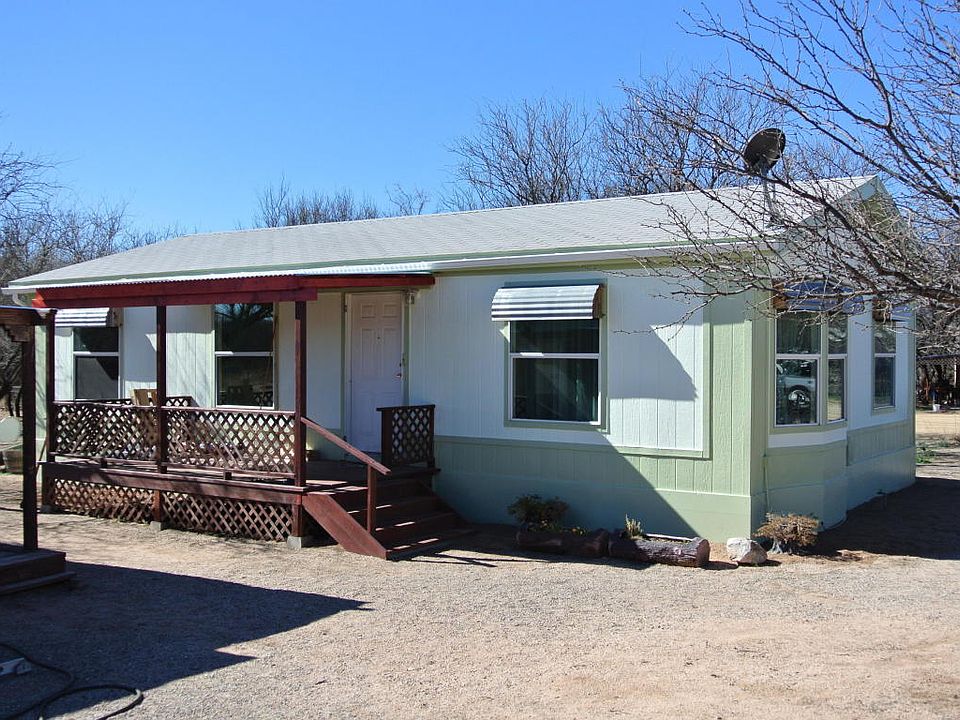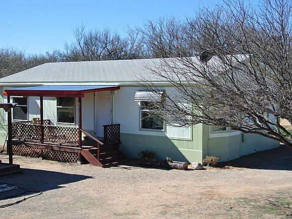 Cute double wide manufactured home on almost an acre! This home has been freshly painted,new concrete fiberboard skirting has been installed.Extra storage sheds and many mature mesquite trees! RV space available and room for animals!