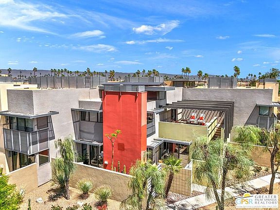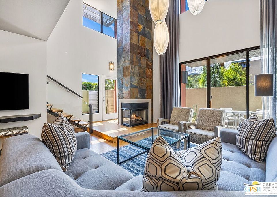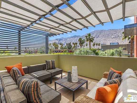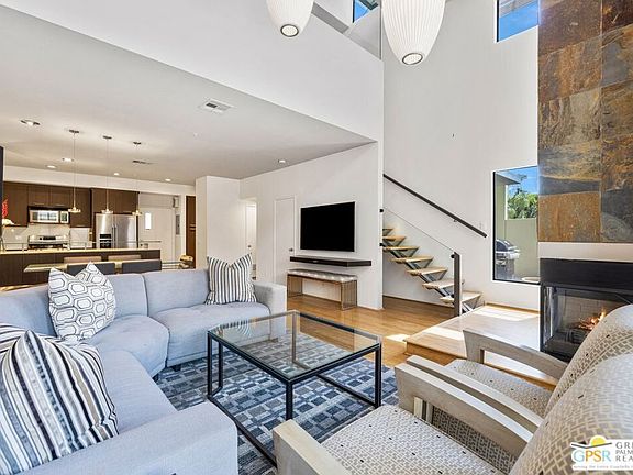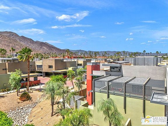 Are you looking for an ultra-modern condo located on land you own in Downtown Palm Springs that offers premier views, modern design finishes, and enjoyment of 4 community pools and spas? Would you like to own and enjoy a condo that is within blocks of MULTIPLE restaurants, retailers and entertainment venues? If so, 747 East Arenas located in 48 @ Arenas is THE ONE to see! Located on the end of the community, this stylish condo truly offers MAGNIFICENT mountain views and fresh finishes plus two covered parking spaces, paid for solar panels, and a low HOA fee that covers earthquake insurance, water and trash utilities, and roof maintenance. You will also love the upgraded kitchen that has modern cabinets, quartz counters with elevated glass counter, stainless appliances, and bamboo flooring that continue into the light and bright dining and living areas that offer tall ceilings, mountain views, access to the outside patios, and a gas fireplace. Additional powder bathroom, inside laundry area, and direct access to the covered parking. This condo includes TWO covered parking spaces! Also on the main floor is Primary Ensuite One that offers views, access to the outside patio, two closets, and a private bath with modern cabinets, tile flooring, and a walk-in shower. Upstairs, you will find the Primary Ensuite Two that also clerestory windows, mountain views, access to the outside deck, walk-in closet and a private bath with modern cabinets, tile flooring and a walk-in shower. Come see it today!