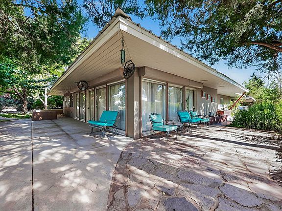 Nestled in the tranquil Lee Acres neighborhood, this remarkable property spans .94 acres of beautifully landscaped grounds, perfect for outdoor enthusiasts and families alike. The expansive living space features a spacious living room with a fireplace and a family room equipped with a wood stove, ideal for cozy gatherings. Classic bathroom styling and a well-appointed guest suite with a separate entrance add versatility for visitors or additional family members. The property boasts an irrigation well that nourishes a stunning array of mature trees and an herb and vegetable garden. With a fenced courtyard for pets and three horse stalls, the backyard invites endless potential for leisure activities such as installing a pool or tennis court. Additionally, two