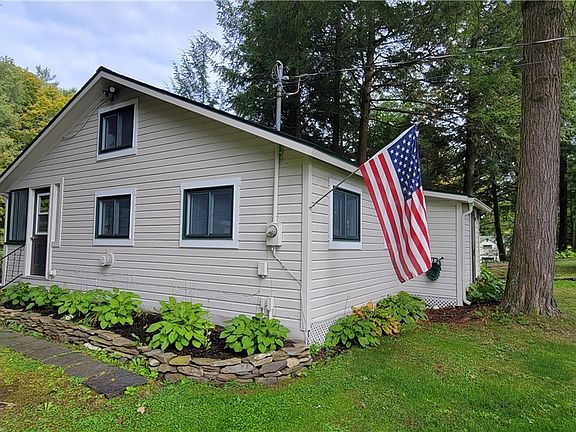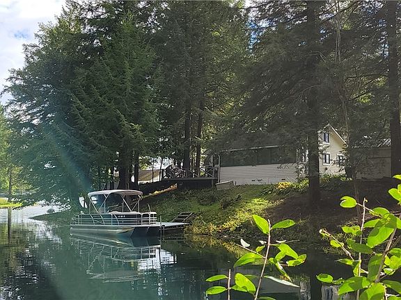 Welcome to paradise! Charming adirondack style lakefront cottage tucked away on 150+ feet of pristine waterfront cove (Turtle Cove) with direct access to beautiful Lake Moraine. Lake Moraine is a 261 acre freshwater lake, known for its clear waters as well as variety of fish (stocked annually by NYSDEC) and offers a boat-up seasonal restaurant, State run boat launch plus easy access to Hamilton Village - home to Colgate University (5 min), golf, local farm brewing, horseback riding, hiking trails, restaurants and all that scenic Madison County has to offer! This turnkey seasonal cottage (easily converted to year round) offers privacy at the end of the road with huge deck/patio area, fireplace with Adirondack chairs, enclosed porch overlooking private dock on your own private inlet, 2 bedrooms and 1 bath with skylight on main level plus open loft bedroom and 2 sleeper sofas! Recent updates include interior and exterior freshly painted, new kitchen with quartz counters and modern appliances, updated bath. Cottage is serviced by well (with UV purification), septic, propane (cooking & wall heater) plus updated windows, utility shed and detached stocked shed. Come enjoy lake living!