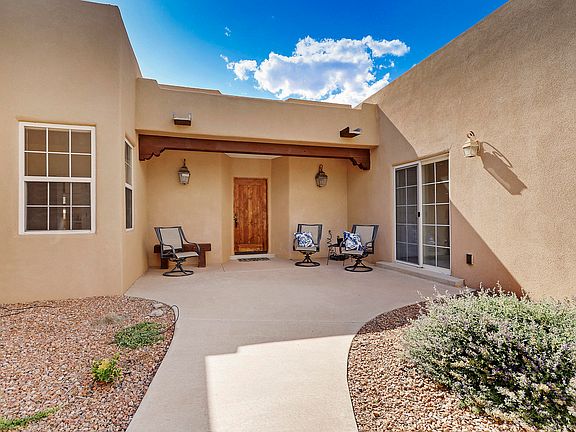 A former builder's home with upgrades and top quality construction. Custom home with an open and spacious floor plan. Next to Corrales with all the charm. & views but not the price. Stunning mountain views, serene and quiet neighborhood with paved streets, city water & sewer, great indoor/outdoor entertaining home with open gourmet kitchen, skylights, tall ceilings with accent beams, outdoor fireplace, large office with beautiful hardwoods, spacious utility room, office space or 4th bedroom option. Many zones of radiant heat, massive yard with parking for RV & Fenced yard. 2.5 car garage with plenty of room for storage.