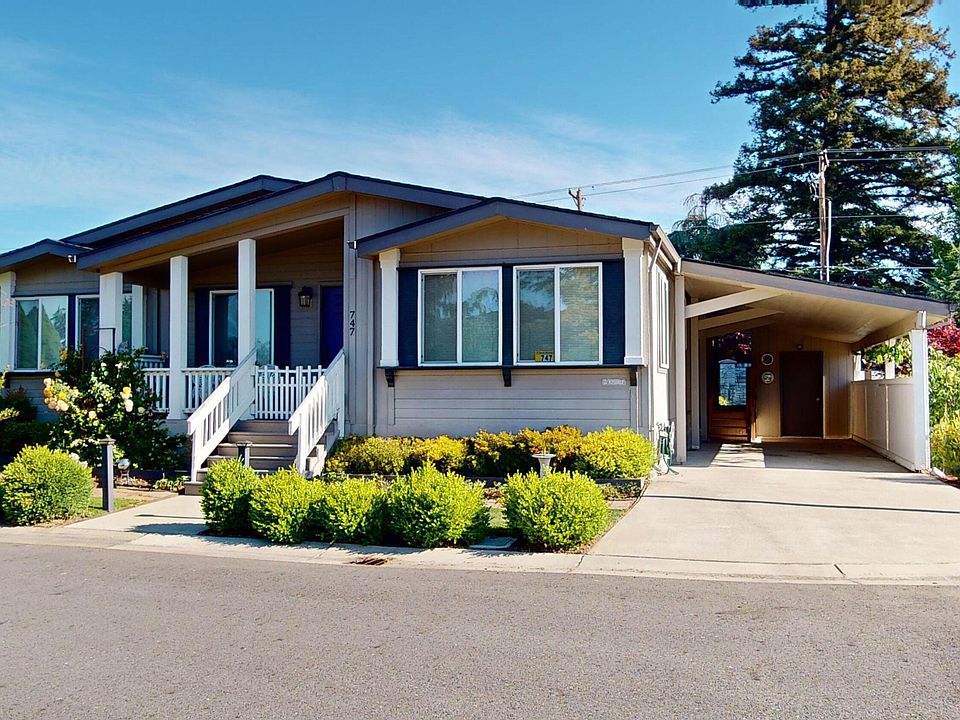 Welcome to Westlake Village, the premier manufactured home park in Grants Pass. This immaculately maintained 3 bedroom, 2.5 bath home is spacious with over 1,917 sq. ft. and features a Modern style large kitchen with granite counter tops, an island, tons of cabinets and counter space. Gorgeous laminate flooring in kitchen, dining, and living area. Large living room with vaulted ceilings and plenty of windows to enjoy the natural lighting. Roomy en suite with walk in closet, master bath has a lovely garden tub, double vanity and a separate step in shower. Beautiful fenced in backyard and easy care landscaping. You will never know this is a manufactured home. There's carport parking and a shed for extra storage. Come explore all that living at Westlake Village has to offer. From peaceful water features to the lake, park, and recreational center, this 55+ community is the perfect place to call home!