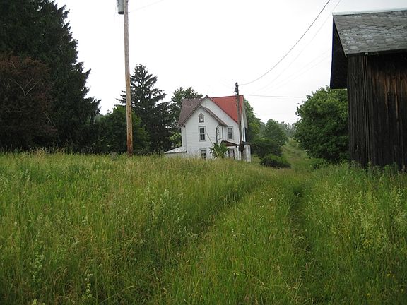 A long country lane brings you to this 4+ bedroom, 1 bath 1890's Farmhouse in need of TLC. Kitchen, dining, living room with parlor with wainscoting, den/office area with full bath. Second floor has 4+ bedrooms and 3rd floor attic has ample storage area. The acreage is gently rolling with views of the countryside. Family owned since 1919. A must see!
