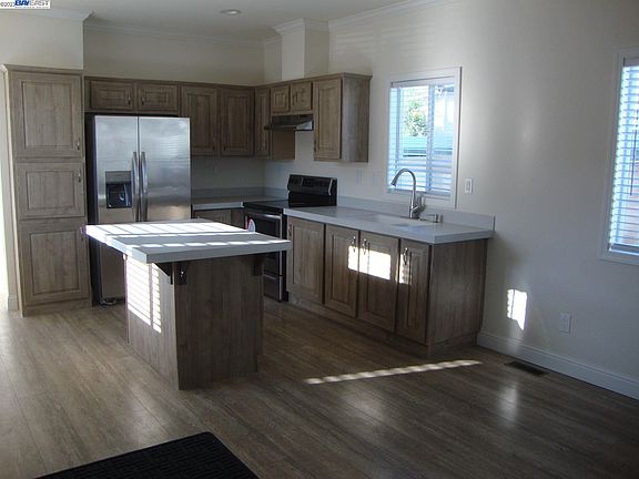 BRAND NEW Manufactured HOME 2022 - 2Bedroom - 1 Bath -594 SqFt. Home features ALL ELECTRIC, a split floor plan with open kitchen and center island, refrigerator - lots of cabinets stainless appliances. 3 Ceiling Fans. Composition roof -Located in Washington Manor and walking distance to Greenhouse Shopping Center, close to BART. Owner will consider carrying a 1st loan at 6% for 5yrs with 50%down.
