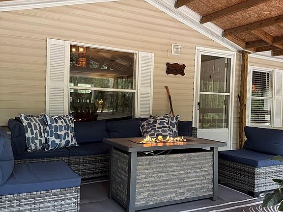 New gas fireplace insertPole barnNew led lightsSoft colorsFront covered deckDouble french doorsTons of closet space