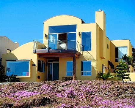 A sophisticated architectural gem, "Little Wave" is a custom-built 16 year old ocean front home. Imagine the Pacific as your front yard where you can watch the seals and playful otters and say hello to the migrating whales passing by. This casually elegant home incorporates an ocean wave motif throughout, from the curve on the roof line to the curve on the newel post and staircase, to the curve of the vaulted ceiling. Beautiful living room with fireplace, high curved ceiling, deck and spectacular views. Lovely master suite opening to another deck. Second bedroom and bath downstairs, skylights, double pane windows and doors, hardwood floors throughout, copper roofing, spacious sunny patio, alarm system, 2009 square feet of living area plus two-car attached garage. Walk to beach, restaurants and shops. Offered at $1,799,000.
