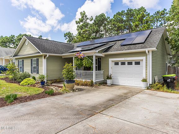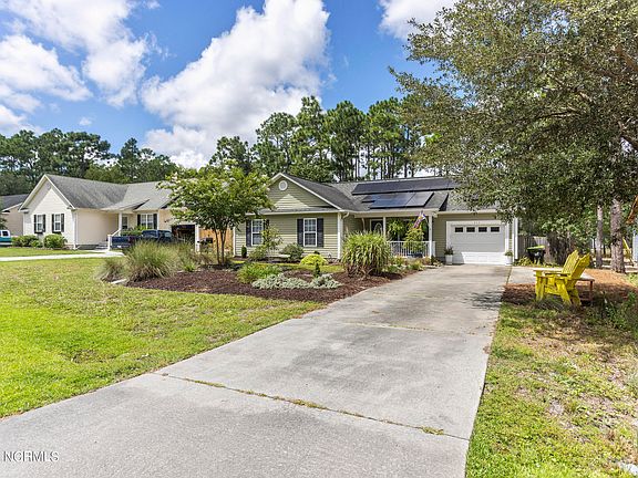 Discover the perfect blend of comfort, style and efficiency in this well maintained 2008 home nestled in the serene community if Boiling Springs Lakes. Offering modern coastal vibes this home boasts numerous upgrades that make it a true gem. Every efficiency comes with the newly installed solar system that significantly reduces the electric cost. Upgraded laminate wood floors and custom moldings throughout the home. Large volume ceiling family room has a contemporary electric fireplace with stone surround. The updated kitchen features granite countertops, tile backsplash, designer grade cabinetry and stainless steel appliance. The master bedroom is a retreat with an octagon tray ceiling, both hang-up closet and separate walk-in closet. The stylish bath includes a tiled walk-in shower and tile floor. Garage with pull down stair attic storage. Step out back into an outdoor paradise with lush greenery, flowering trees and plants. Entertain on the cool breeze screened porch or the sunny raised deck. Relax by the paver patio firepit area. The backyard also features a large grilling area, private hot tub and a spacious storage, garden or tool shed with exterior potting work table. Updated HVAC and water heater. Enjoy community nature walking trails and parks with tennis/pickleball and playgrounds. Conveniently located for easy access to golf courses and Brunswick County beaches, Minutes from quaint Historic Southport Riverfront along with the Bald Head Island resort ferry. Only a short drive to Wilmington. Experience easy southern coastal living in the delightful home!