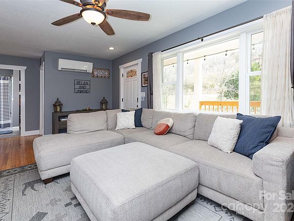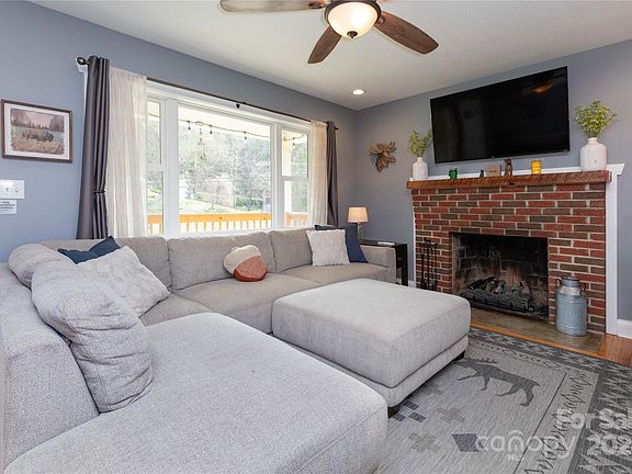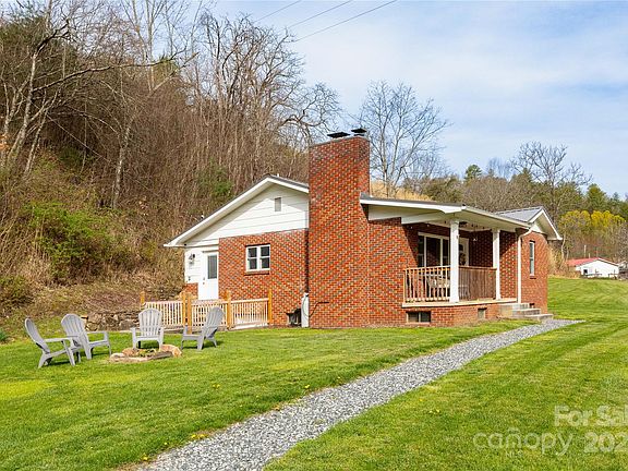 Beautifully renovated brick home perfect for homesteading, under 10 minutes from downtown Marshall and Mars Hill! This 2 bedroom/1 bathroom home was renovated recently with modern amenities, yet retains the charm with original hardwood flooring and brick fireplace in living room. Open floorplan with dining area, stainless steel appliances, breakfast bar and built-in sideboard buffet with plenty of storage. Two spacious bedrooms, one with double closets and laundry closet with stacked washer & dryer. Relax on the front porch overlooking bull creek across the street. Huge level yard has fire pit and green space perfect for a large garden. Three-bay barn in good shape would be perfect for a workshop. Property is situated in between Marshall and Mars Hill, easy access to I-26. 20 minutes to Weaverville, 30 minutes to Asheville.