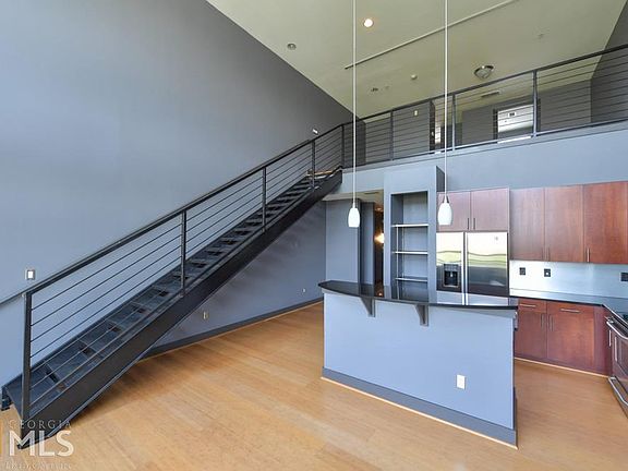Incredible City View & Top Floor Unit. Only "steps" from the Beltline, Dogpark, Ponce City Market. You get an impressive gym with a salt water pool, cyber cafe, lounge, etc. Two story unit which gives you privacy as well as an "Open" design. Hardwoods throughout, Terrace gives a skyline view. Granite counter tops, washer & dryer remain. Parking is Exclusive for this Building.