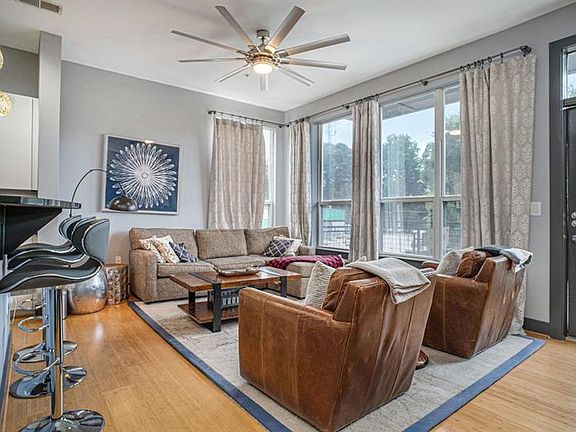 BEAUTIFUL, spacious end unit and on the BELTLINE. One of the largest corner units with plenty of windows and natural light, 10' ceilings, Bamboo flooring, bright open kitchen w/ breakfast bar, stainless appliances and backsplash, granite counters. Living area has a custom brick accent wall that is absolutely beautiful. Spacious bedroom & walk-in closet outfitted with ELFA system. Skyline views from the balcony, one dedicated garage space and one assigned parking space tandem style. Amenities include a salt water pool, Largest dog park in Atlanta, gym, Clubhouse & grilling area. Wouldn't it be nice to leave your car at home? Access the BELTLINE through Dog Park right by the skate park. Convenient to grocery stores, shops, restaurants, Ponce City Market, & I-75/I-85. We'll pay an adoption fee at the owner's favorite charity, Atlanta Lab Rescue, when this unit sells!