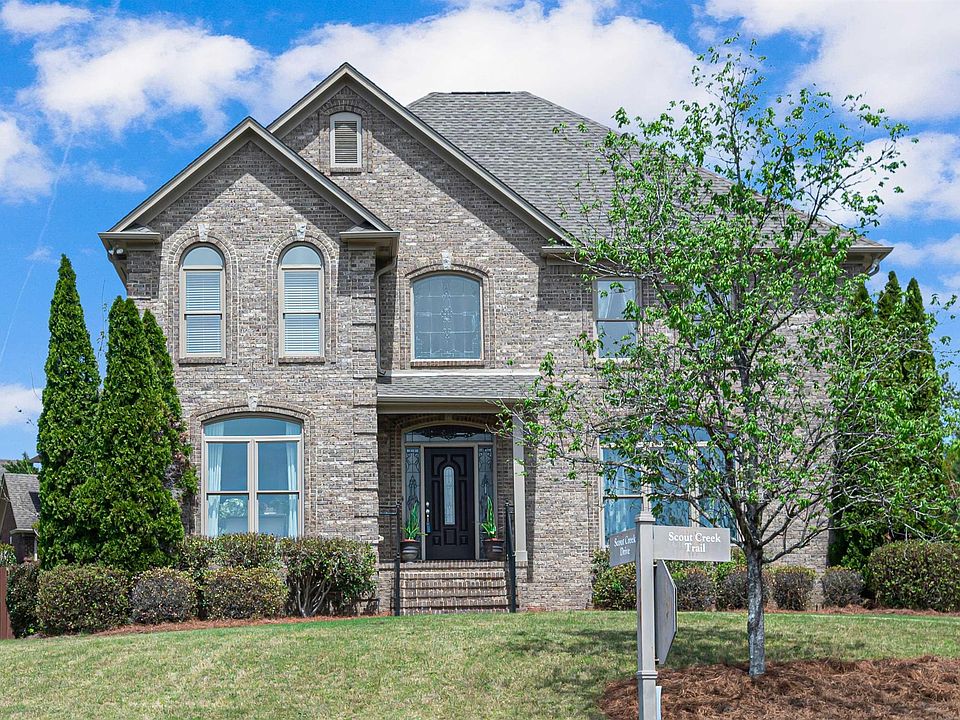 Best priced home in Scout Creek with 4 bedrooms and 4 full bathrooms has 4,000+ square feet to spread out. The soaring 2-story ceiling greets guests and no home is complete now days without the necessary "home office". The kitchen features stainless appliances w/a separate gas cook-top and warming drawer; work island; beautiful tile backsplash; stainless vented hood. The kitchen opens to the expansive great room w/double doors to the screened patio. There is one bedroom on the main level w/a full bathroom just steps away. Upstairs features an extra large master BD w/sitting room; large master bathroom w/giant walk-in closet. Two bedrooms share a Jack-n-Jill bathroom. The finished basement offers a kitchenette, games room, media room and full bathroom. Roof new: 2021 HVACs new 2022 Hot water heater new: 2022. Walking distance to the neighborhood pool and convenient to schools, shopping and I-459. Call today to see this spacious home.