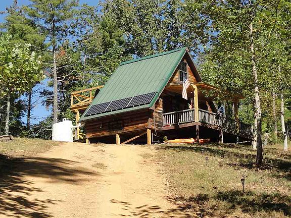 Off-the-grid - 4.7 acres within the Cherokee National Forest. A cozy cabin overlooks the forest & has a pretty mountain view. No utilities are available in the national forest, but the cabin has power supplied by solar panels & generator. Water supply via rainwater catchment system. Main level features living room with stone-front gas-log fireplace, a small but convenient kitchen, & full bath. Bedroom up has private deck enjoying stunning view. Large, covered front porch; deck off living room. Land is wooded with a cleared area around the house with room for large garden. Relax around the small fire pit area & enjoy the view on nice days or cozy up around a fire on cooler days. Seller will pay or assist w/buyer closing costs with acceptable offer. The area is abundant with wildlife - deer and turkey are frequent visitors. If you want to embrace off-the-grid living full time or if you just want a pleasant get-away, this unique property might be just what you are looking for! Currently in rental program; appt required. Please NOTE: 4wd is needed to access the property.