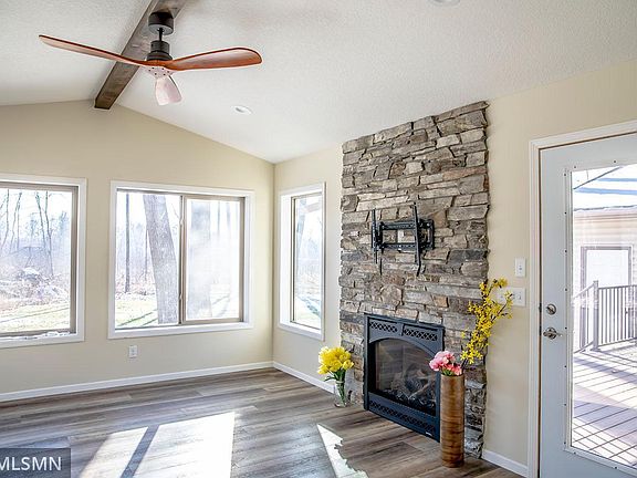 Adjoining over 99 acres of DNR managed lands, enjoy the beautiful renovations the current owner has completed to enhance your new life in the country. Nothing has been spared as they replaced soffits, siding and gutters along with new energy efficient windows. New roof completed in January, 2023! A new well and septic round out the major improvements. The stunning sunroom (complete with its' own mini split for heat and air) invites curling up by the fireplace while enjoying 4 seasons of wildlife. The flow of the interior is complimented by all new flooring throughout the upper level. The oversized garage can house toys and vehicles, strip off the wet clothes and come in through the heated and insulated breezeway.What an incredible location for commuting, either to your home office, Hwy 169 or east to Cambridge! If you crave a quietly sophisticated home with privacy and warmth, you have found it. Quick closing possible!