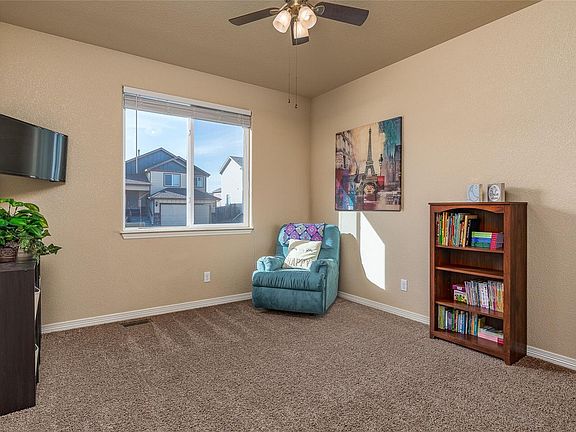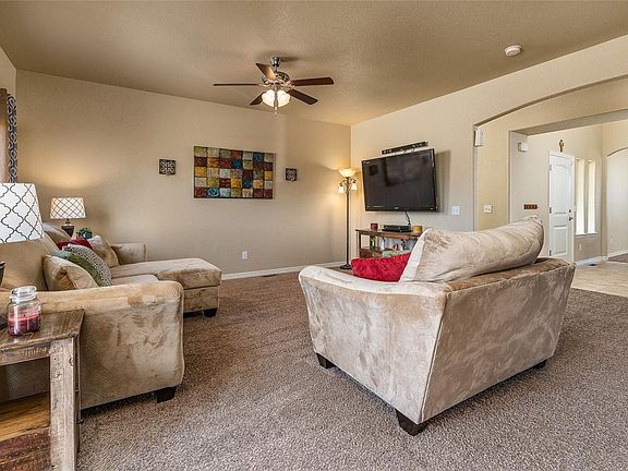 Excellent Value in Quality Fountain Valley 2 Story Home~Large Fenced Yard Backs to Open Space~Open Floor Plan~Expand into the Unfin Bsmt~Central Air, Humidifier~Tiled 2-Story Entry~Gourmet Kitchen w/Wood Floors, Granite Counters & Bar, Pantry, SS Appl~DR w/Wood Floor off Kit & FR~ML LR/Flex Rm~MBR w/Sitting Area, 2 sided Fireplace +5pc Bath & 3 more Upper BRs + Full Bath~Upper Laundry w/Cabinets & Window, Plumbed for Sink~Fin 3-Car Tandem Garage~ Large Patio & Firepit~Playset Stays~Easy Access to Ft Carson and Downtown. Move-in ready! Open floor plan great for entertaining! Lots of natural light. 2 story tiled Entry. Kitchen featuring wood floors, slab granite counter & extended bar tops, corner walk-in pantry and tall cabinets w/crown molding. Appliances incl SS dishwasher, smooth top range oven, built-in microwave and side by side refrigerator.